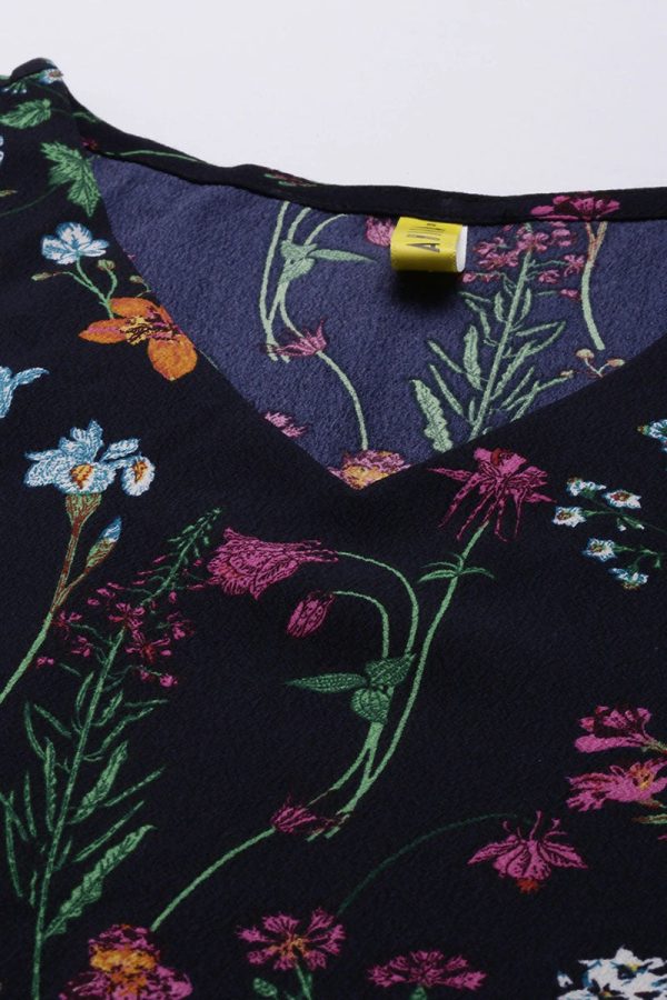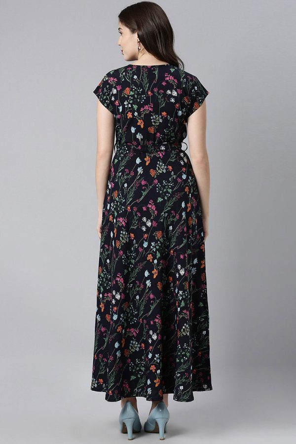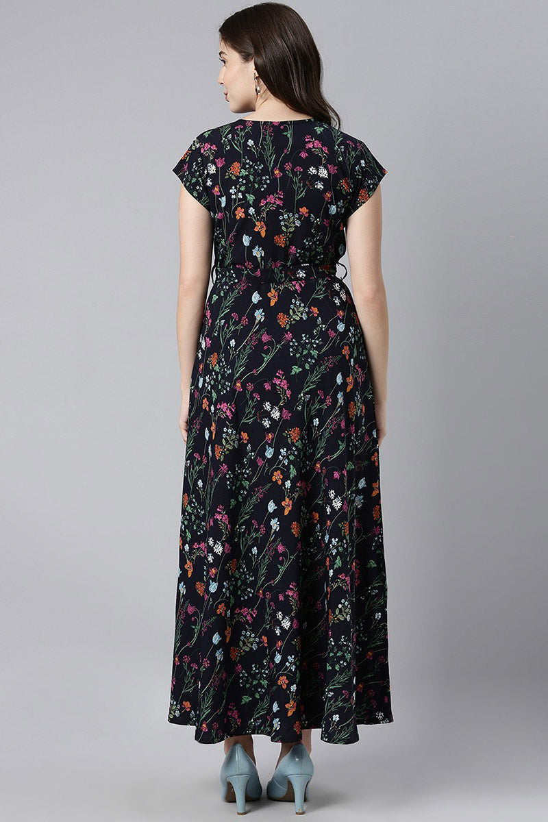 Ahika’s poly georgette navy blue floral maxi dress is a must-have dress for your summer wardrobe. This navy blue and pink floral maxi dress is made using a soft polyester fabric that hugs every body shape beautifully.
